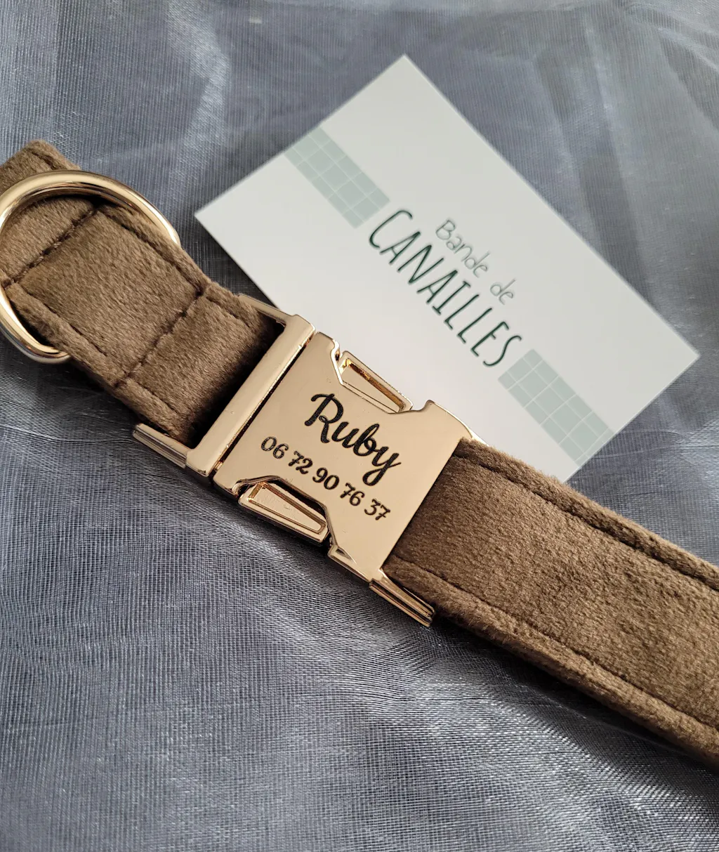 🇫🇷 Nous gravons les colliers et les harnais selon vos envies dans notre atelier en France. Vous pouvez graver le nom, et/ou le numéro de téléphone ou la date de naissance.