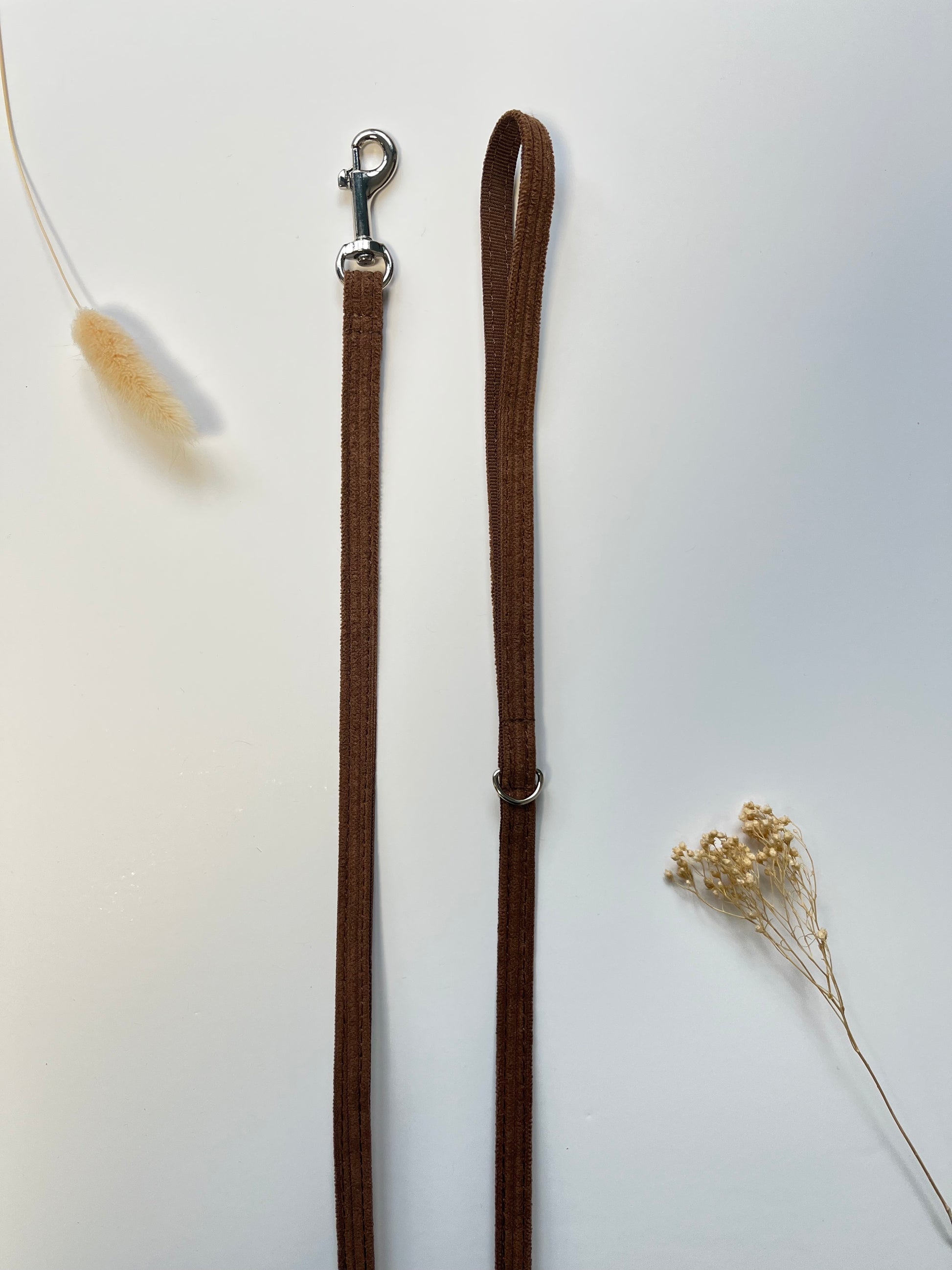 👉 Offrez lui la meilleure expérience de promenade avec notre laisse en velours côtelé marron.